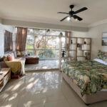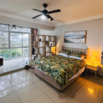 Gone Surfing is a studio apartment in Umdloti Beach that can accommodate a couple or a family of up to 4 people, with one queen sized bed and one large sofa which can sleep one adult or two small children. Just 10 kms from Durban King Shaka International Airport lies Umdloti Beach, also known as eMdloti, which is a small resort village on Kwa Zulu Natal’s North Coast. Our studio apartment, Gone Surfing, is in a secure apartment complex situated in a fantastic location on the waterfront, directly across from the tidal swimming pool, and a few steps from a café and two restaurants.