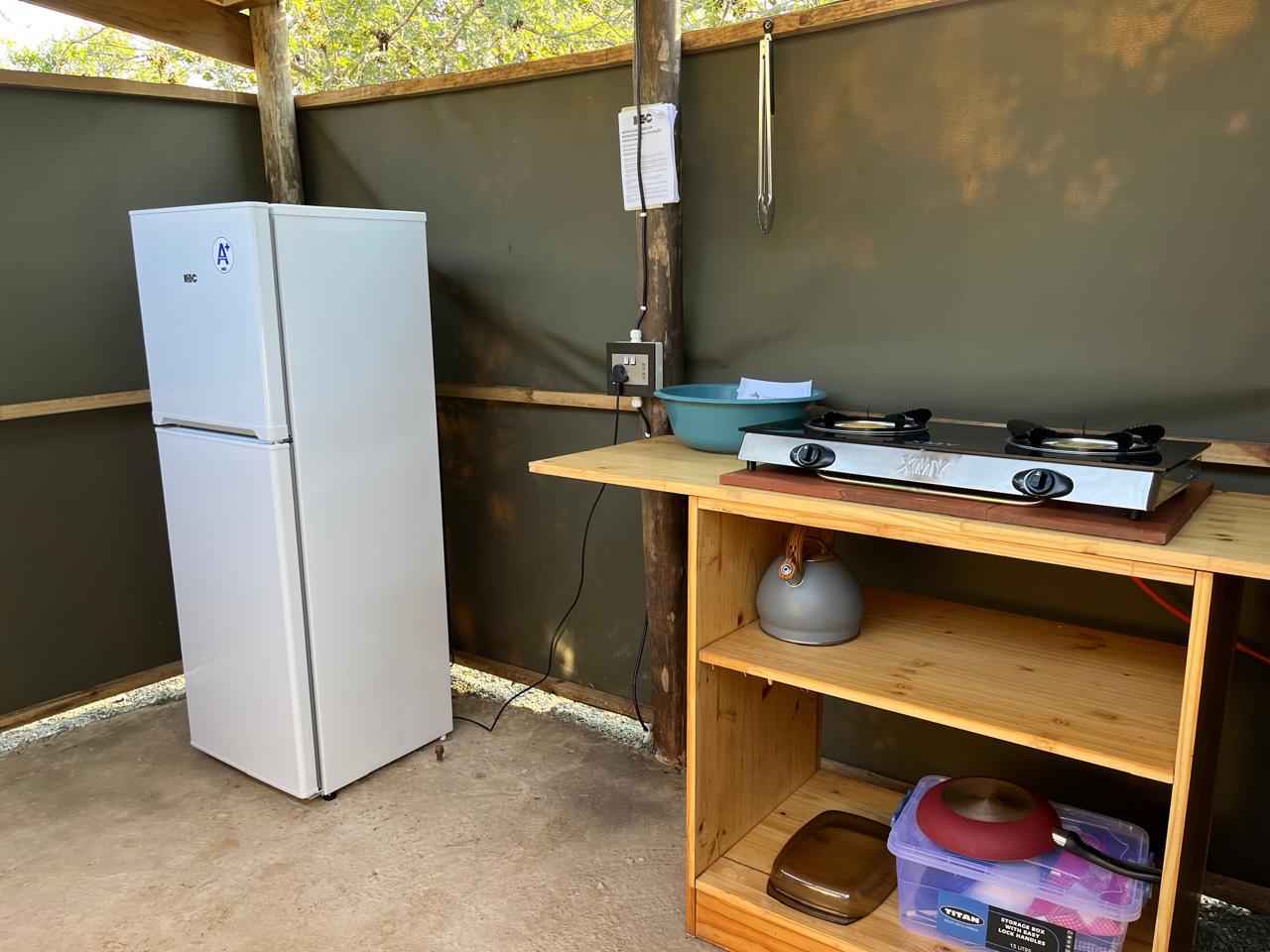 There are 6 campsites, each with own ablutions (rustic hot water shower and flushing toilet). These campsites are well spaced for privacy and are situated just a short walk from the central meeting area where there is a basic kitchen, braai facilities and dining area, as well as a communal campfire. The camp has solar lights and gas powered fridges, geysers and cooking plates. Bring your own tent, or we can set up dome tents for you with 2 beds and bedding provided. At this stage we have only 1 site for a caravan or camping trailer. There is no electrical power point at the camp sites.