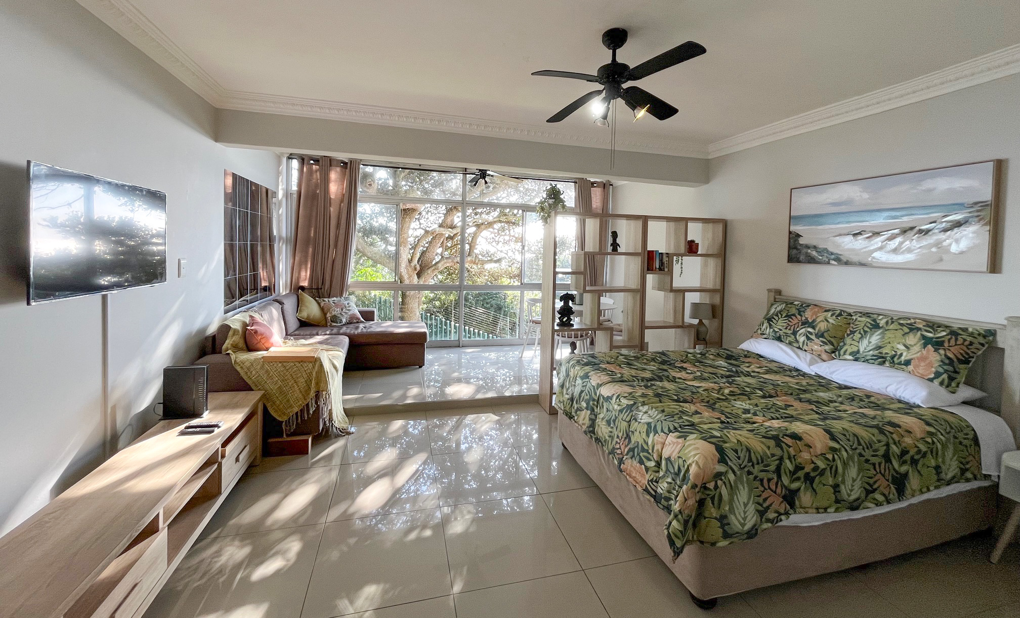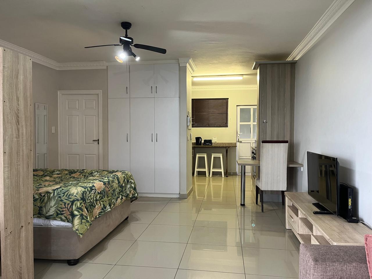 Gone Surfing is a studio apartment in Umdloti Beach that can accommodate a couple or a family of up to 4 people, with one queen sized bed and one large sofa which can sleep one adult or two small children. Just 10 kms from Durban King Shaka International Airport lies Umdloti Beach, also known as eMdloti, which is a small resort village on Kwa Zulu Natal’s North Coast. Our studio apartment, Gone Surfing, is in a secure apartment complex situated in a fantastic location on the waterfront, directly across from the tidal swimming pool, and a few steps from a café and two restaurants.